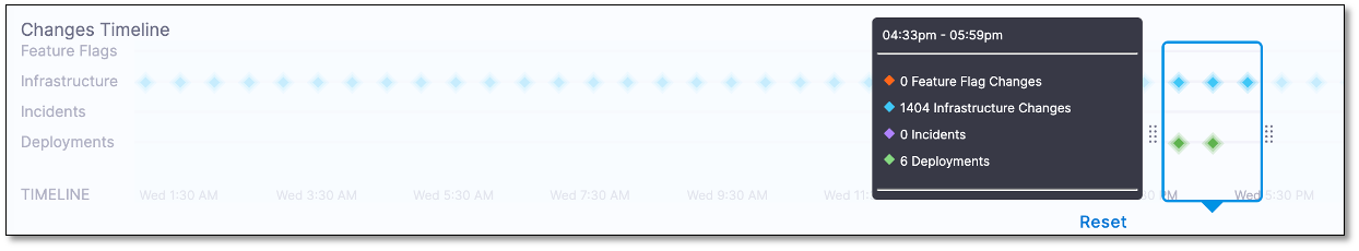 • Change Types: Select the type of change source for which you want to see changes. The available filters are Deployment, Infrastructure, Incidents, Feature Flags, and Chaos Experiment.