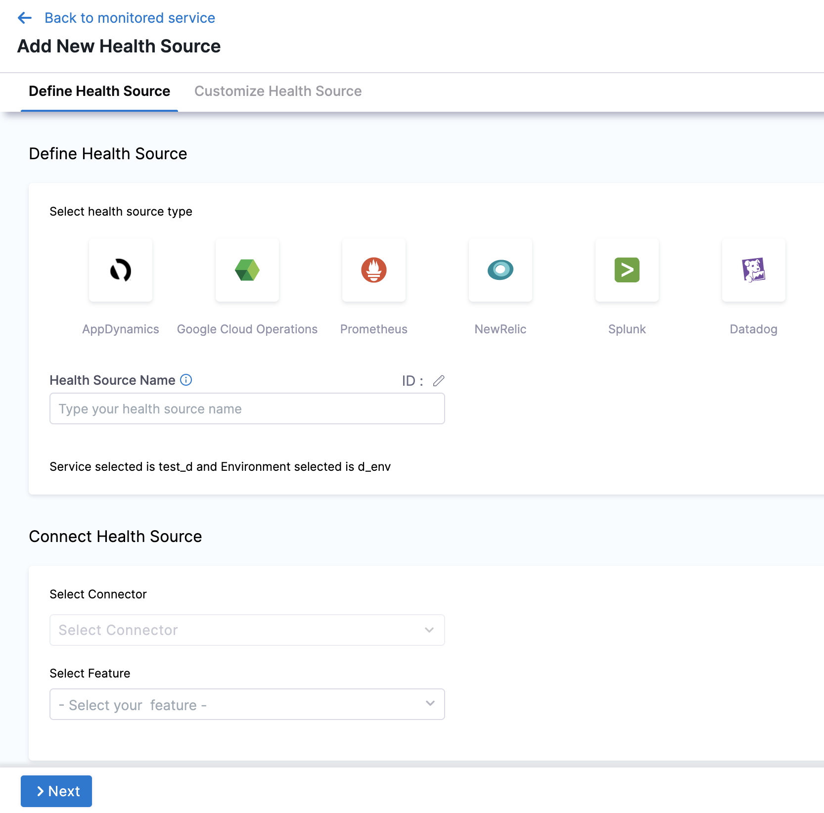 Go to the Service tab, and under Define Your Sources, select + Add New Health Source.