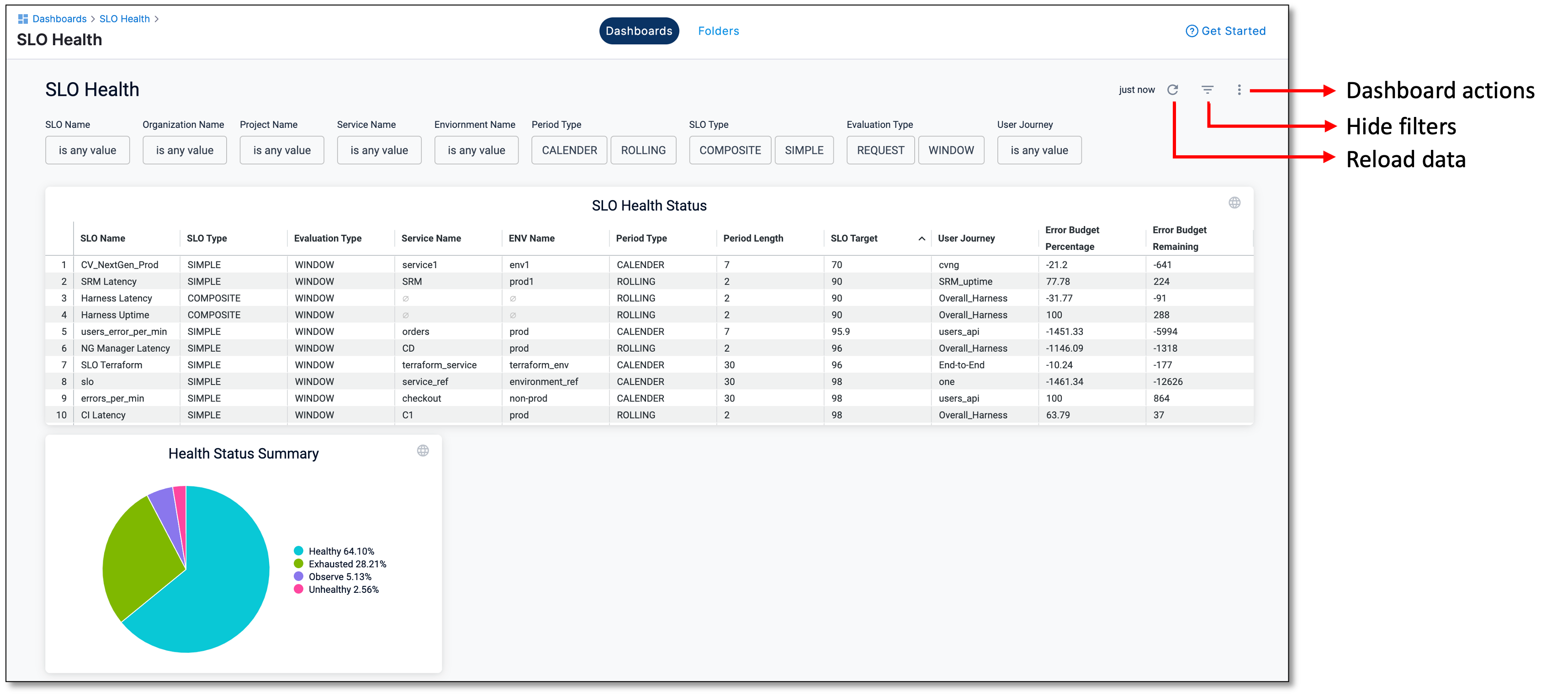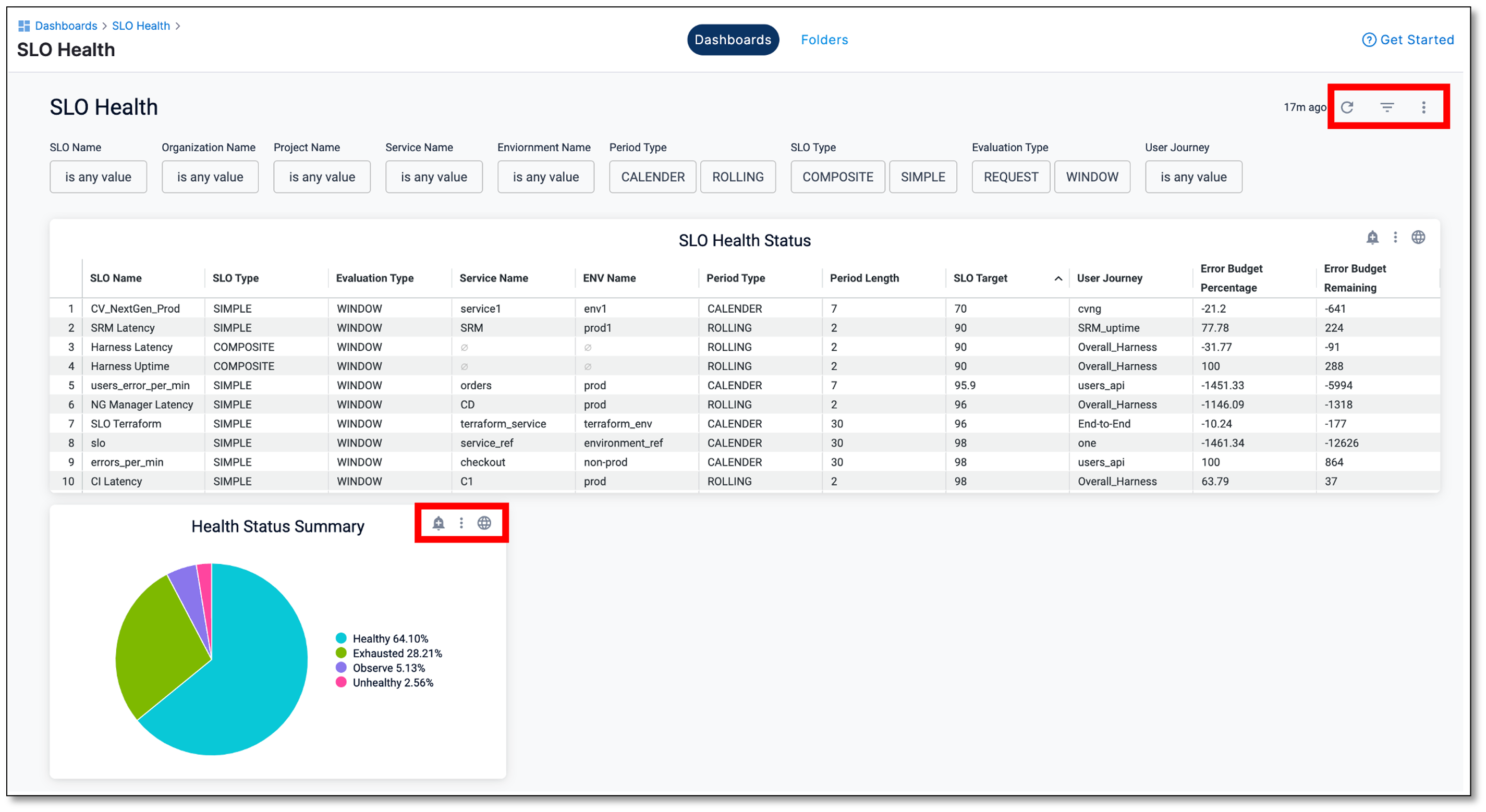 Manage Service Reliability dashboards