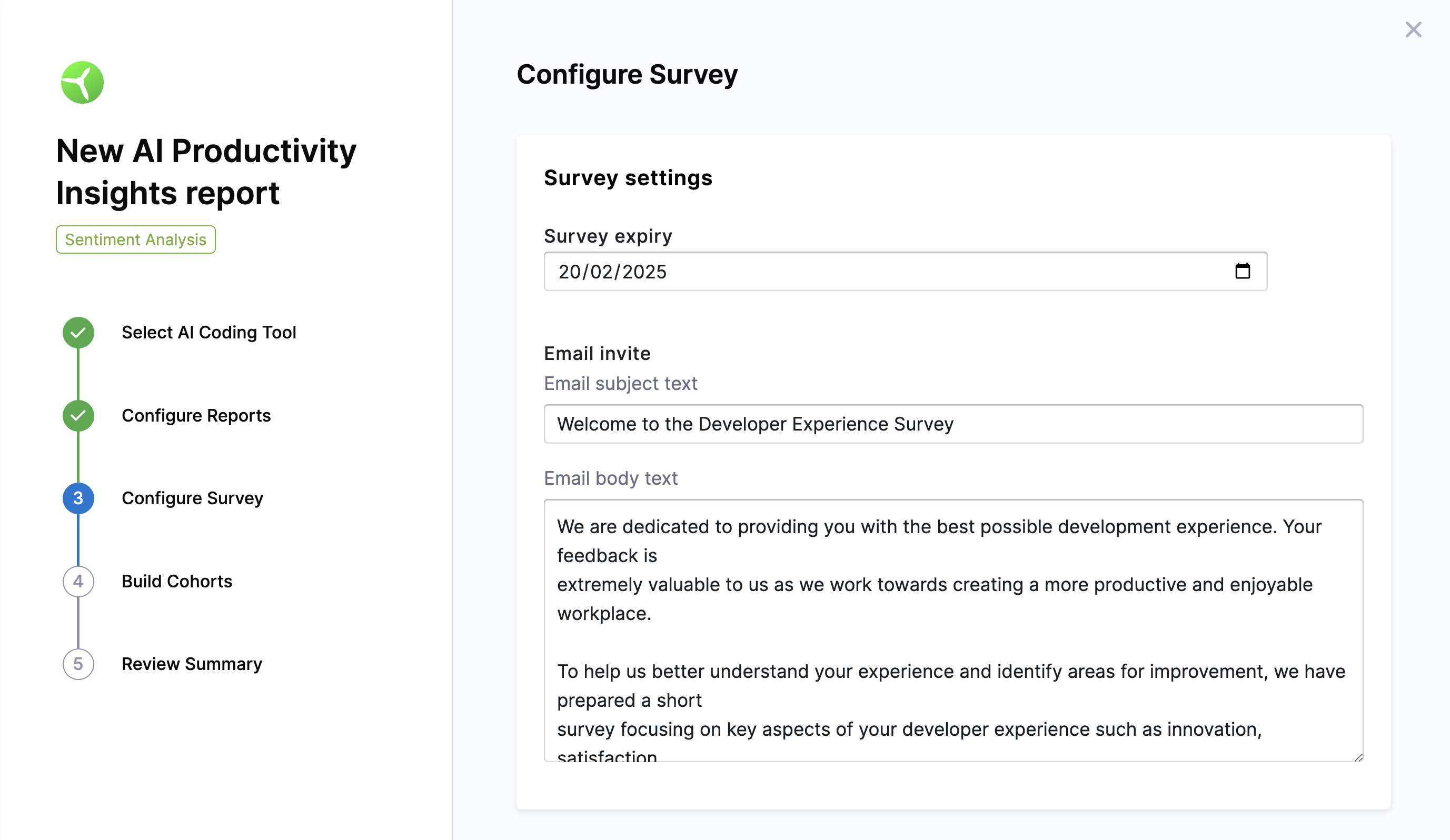 - Quick feedback loops: When you need to quickly assess how AI tools are impacting your developers' experience and performance.