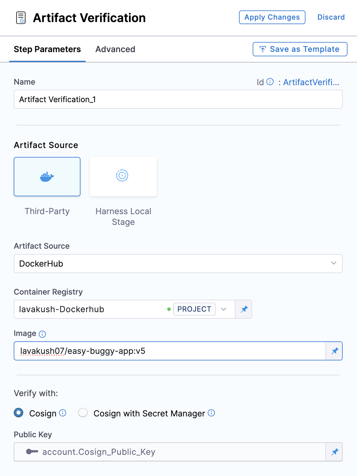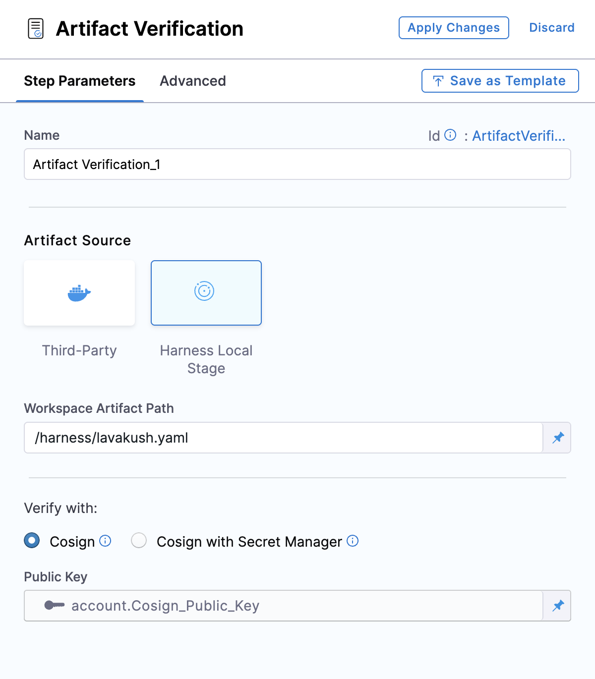 Artifact Verification step configuration