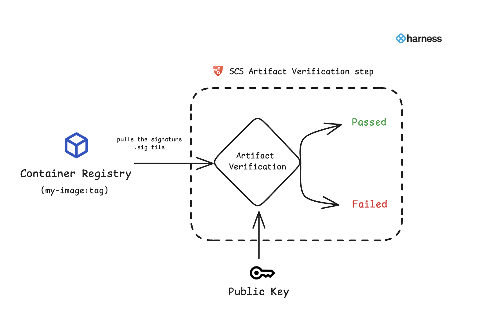 Artifact Verification: Verifies the signed artifact using the corresponding public key to confirm its source and integrity.