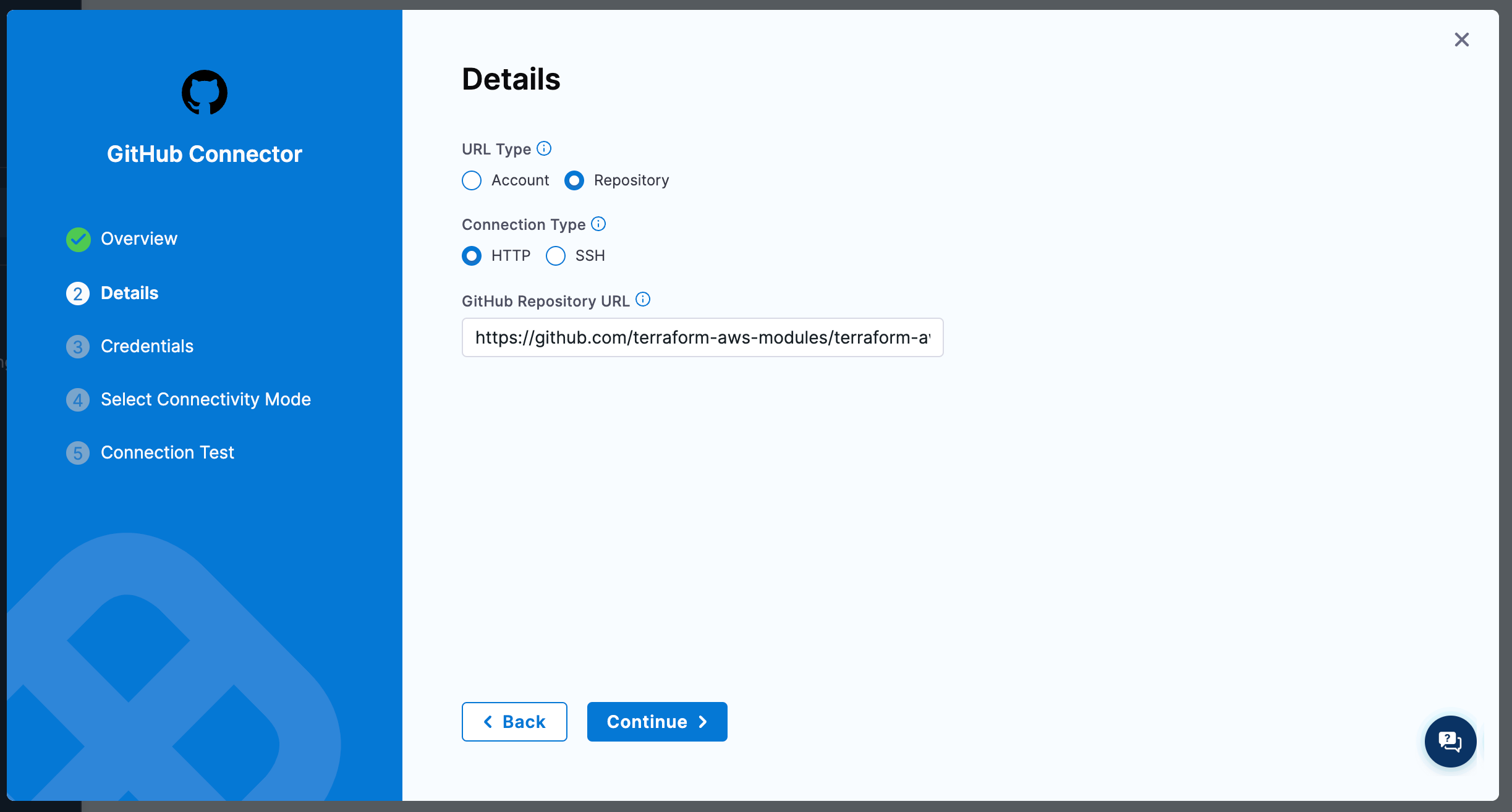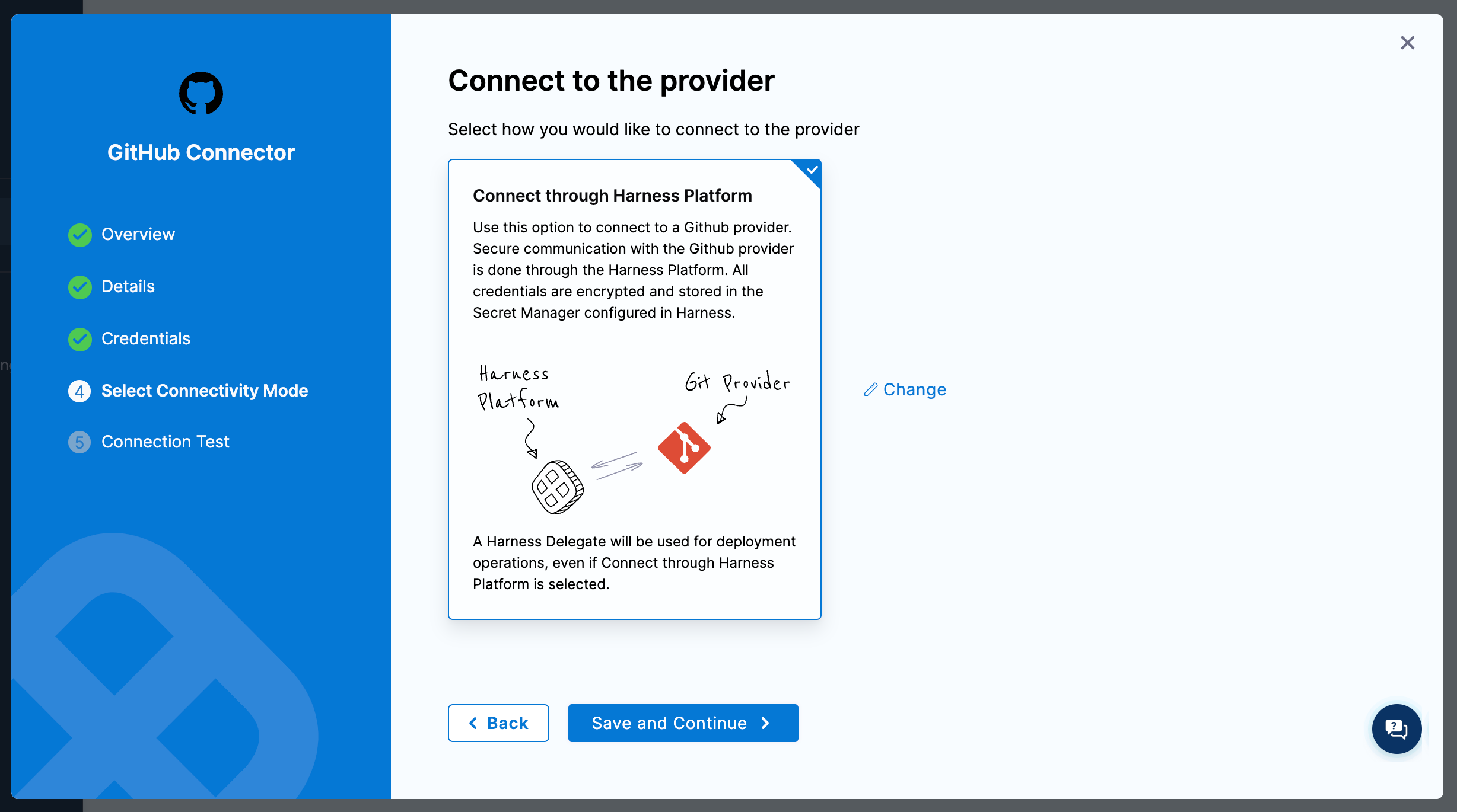 Finally make sure you select "Connect through the Harness platform" as the connection type.