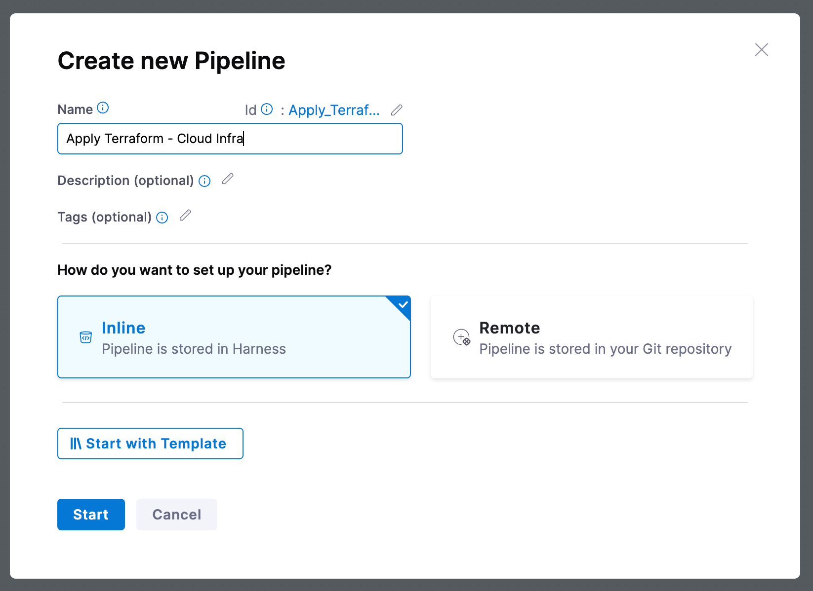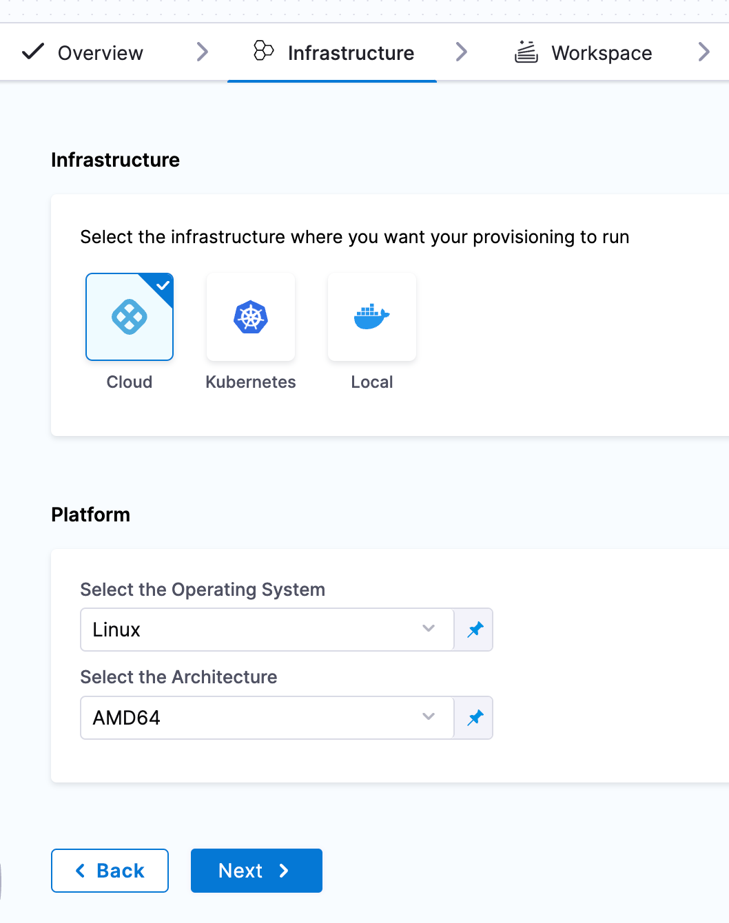 Now you can create a new IaCM pipeline, but when you get to the Infrastructure